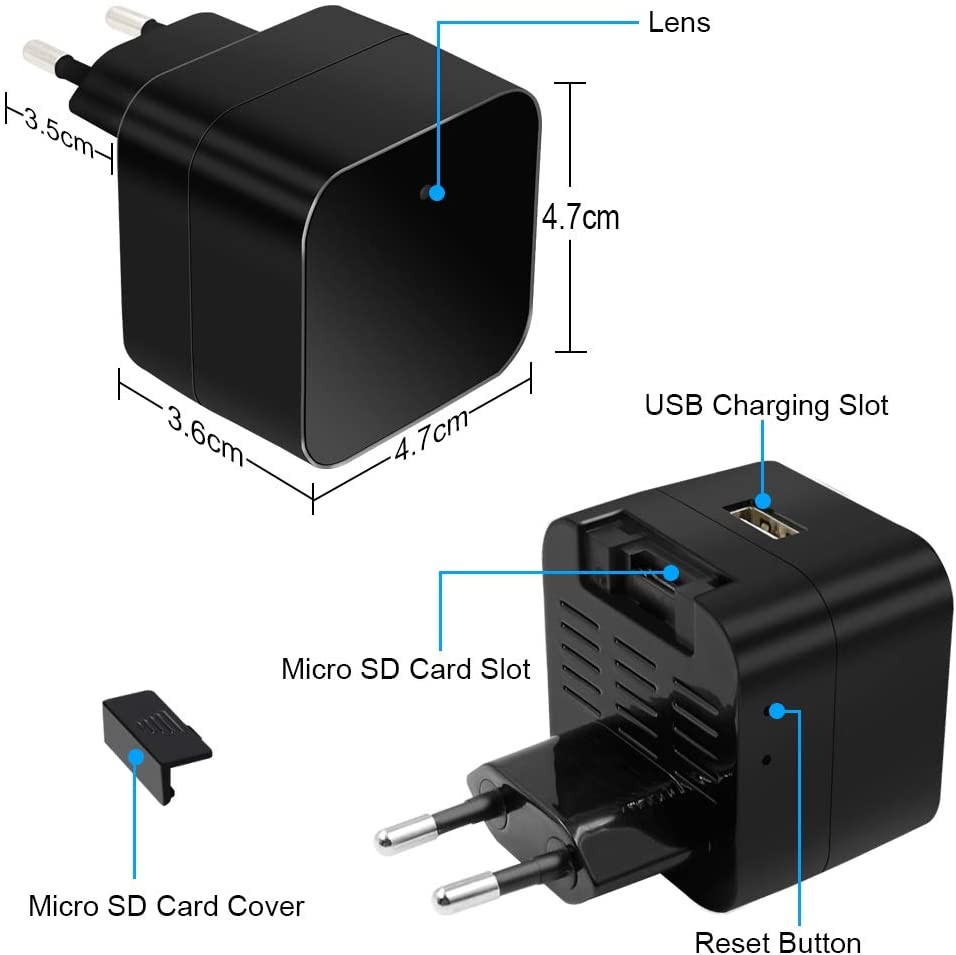 - Full HD WiFi camera in a real wall charger